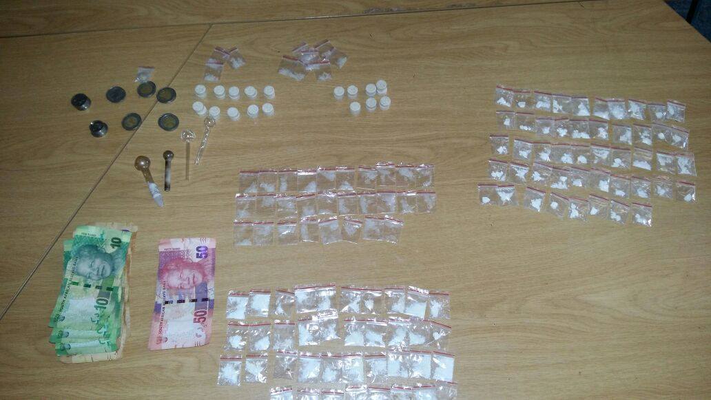 The two suspects were under Crime Intelligence radar before they were pounced yesterday at around 16:30 at Phuthanang in Galeshewe. The suspects were found in possession of 38 packets of crystal meth, 86 of cat and 34 mandrax tablets. Cash found in their possession was also confiscated during the raid.